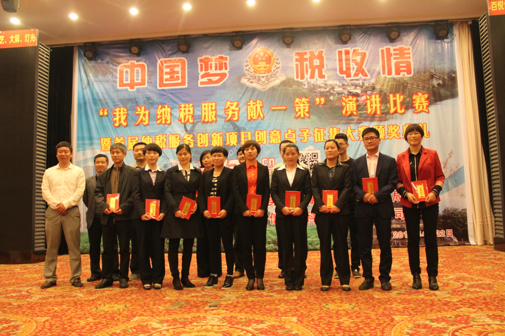 2016年4月22日,由歙縣國、地稅局主辦的《“我為納稅服務(wù)獻(xiàn)一策”演講比賽 暨首屆納稅服務(wù)創(chuàng)新項(xiàng)目創(chuàng)意點(diǎn)子征集大賽頒獎(jiǎng)典禮》在歙縣飯店隆重召開。我公司參加演講員工童群和“納稅服務(wù)”參賽獲獎(jiǎng)8名員工參加了此次活動(dòng)。