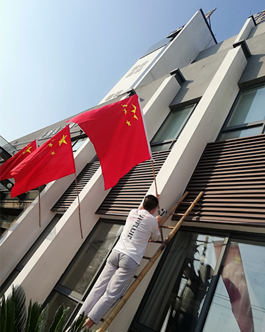 國(guó)慶節(jié)來臨之際,為營(yíng)造干凈、歡樂、喜慶、祥和的節(jié)日氣氛,創(chuàng)造更加整潔優(yōu)美的節(jié)日環(huán)境,9月29全體員工利用中和下午休息時(shí)間對(duì)公司整體環(huán)境進(jìn)行衛(wèi)生大掃除活動(dòng),并懸掛標(biāo)語、安插國(guó)旗,以嶄新的面貌迎接祖國(guó)70周年華誕。