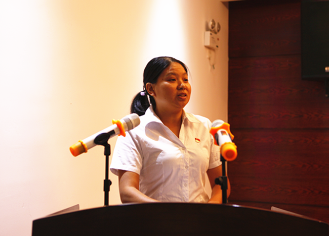 員工代表卓敏結(jié)合自己在金信的工作經(jīng)歷,向大家分享了辛苦努力和快樂成長的點滴。