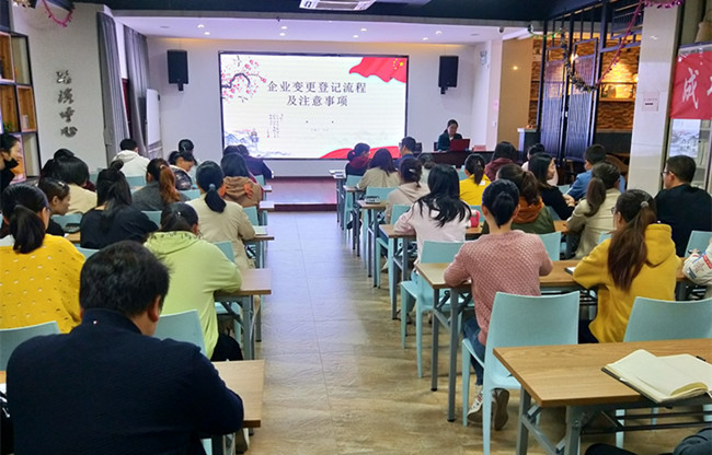10月23日,由受理中心汪蕓主講的“企業(yè)變更登記流程及注意事項(xiàng)”專題PPT分享在一樓眾創(chuàng)空間舉行,園區(qū)企業(yè)負(fù)責(zé)人和中心財(cái)稅服務(wù)人員40余人參與此次分享。