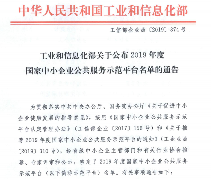 近日,國家工信部發(fā)布《關(guān)于公布2019年度國家中小企業(yè)公共服務(wù)示范平臺名單的通告》,歙縣招商投資服務(wù)中心名列其中,這是我中心繼2015、2018年被認定為“安徽省中小企業(yè)公共服務(wù)示范平臺”稱號后,喜獲國家級殊榮。這也是我市第三家民營中介服務(wù)機構(gòu)躋身國家級服務(wù)平臺。