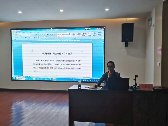 主講汪銘是中心副主任,集注冊(cè)會(huì)計(jì)師、注冊(cè)稅務(wù)師、管理會(huì)計(jì)師與一身,具有豐富的財(cái)稅工作實(shí)踐經(jīng)驗(yàn)。他時(shí)刻關(guān)注政府部門(mén)新近頒布的政策法規(guī),并認(rèn)真學(xué)習(xí)和鉆研。當(dāng)日,汪銘副主任從個(gè)人所得稅征稅對(duì)象、稅率、優(yōu)惠政策、應(yīng)納稅所得額、匯算清繳、法律責(zé)任等六個(gè)方面進(jìn)行深入闡述,并結(jié)合國(guó)家稅務(wù)總局《關(guān)于辦理2019年度個(gè)人所得稅綜合所得匯算清繳事項(xiàng)的公告》(國(guó)家稅務(wù)總局公告2019年第44號(hào))、財(cái)政部 稅務(wù)總局《關(guān)于個(gè)人所得稅綜合所得匯算清繳涉及有關(guān)政策問(wèn)題的公告》(財(cái)政部 稅務(wù)總局公告2019年第94號(hào))進(jìn)行解釋和說(shuō)明,使全體參訓(xùn)人員對(duì)2019年度個(gè)人所得稅匯算有了更全面的認(rèn)識(shí),有助于更好地為中小企業(yè)和納稅人做好相關(guān)服務(wù)。