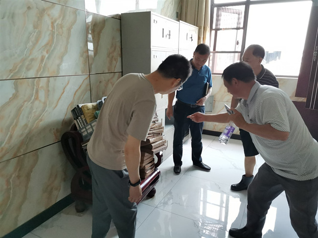 (上圖為公司總經(jīng)理胡海鋒、副總經(jīng)理汪銘在皖金科技了解受災(zāi)情況。)