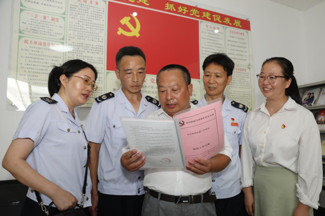 歙縣稅務局第五支部的同志們還參觀了金信財稅黨支部活動室,組委吳云平詳細介紹了黨支部開展活動的情況,交流了黨支部換屆選舉的做法和程序。