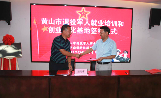“黃山市退役軍人就業(yè)培訓(xùn)與創(chuàng)業(yè)孵化基地” 揭牌儀式在我中心隆重舉行