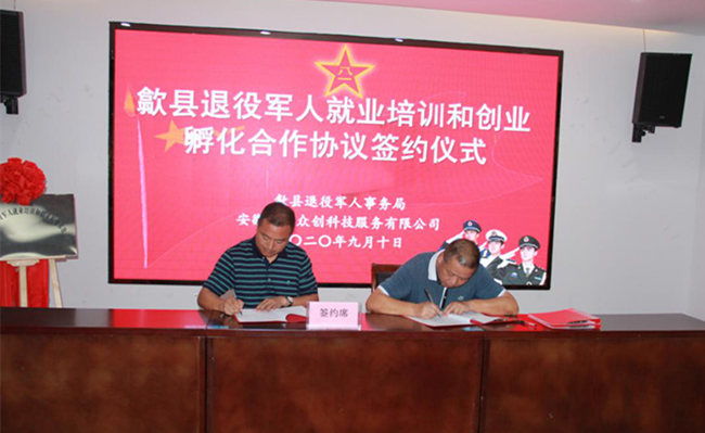 揭牌儀式結(jié)束后,市縣退役軍人事務(wù)局還分別與安徽香寧眾創(chuàng)科技服務(wù)有限公司簽訂了《退役士兵及就業(yè)培訓(xùn)與創(chuàng)業(yè)孵化合作協(xié)議》以此加強(qiáng)退役軍人職業(yè)教育和技能培訓(xùn)方面的合作,提高退役軍人就業(yè)能力,促進(jìn)退役軍人學(xué)以致用,助力退役軍人實(shí)現(xiàn)更好就業(yè)創(chuàng)業(yè)。