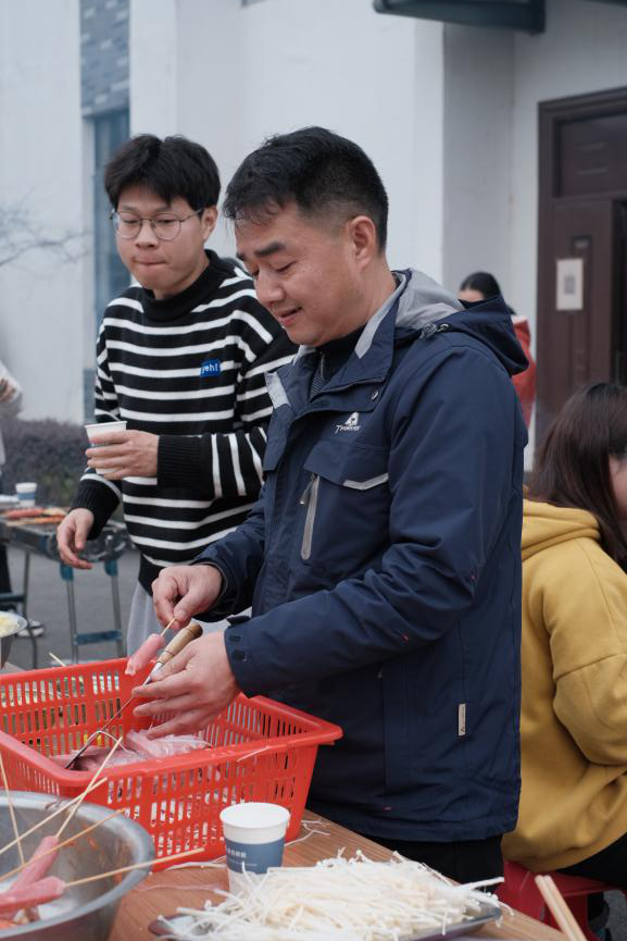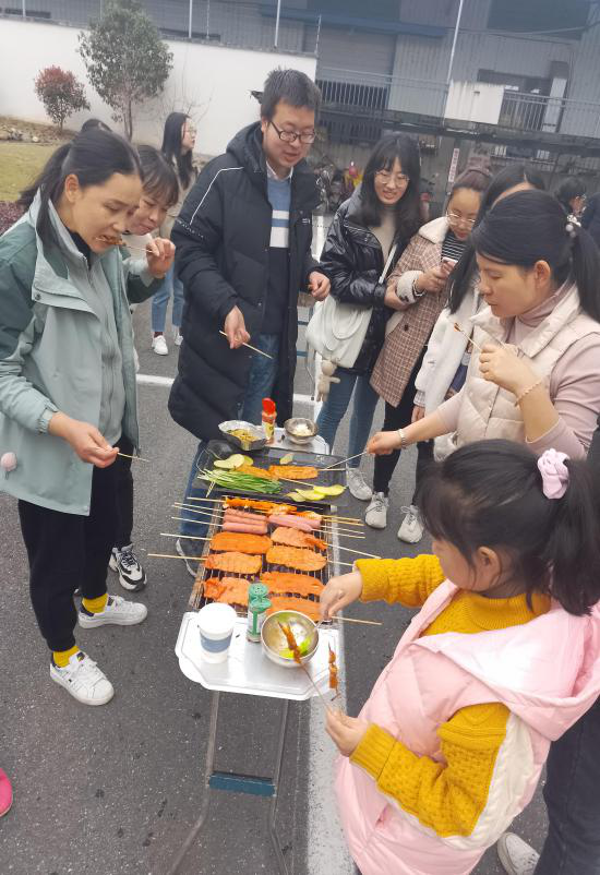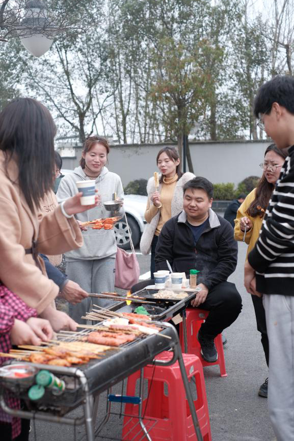 徒步歸來(lái),美味燒烤靚麗登場(chǎng)。你看,食材琳瑯滿目,爐火歡快跳動(dòng),大家興致高漲,紛紛展示各自的看家燒烤技藝,其樂融融。羊肉串、雞翅膀、粉絲扇貝、臭豆腐等幾十種食材輪番上陣,使味蕾和舌尖得到刺激和滿足。