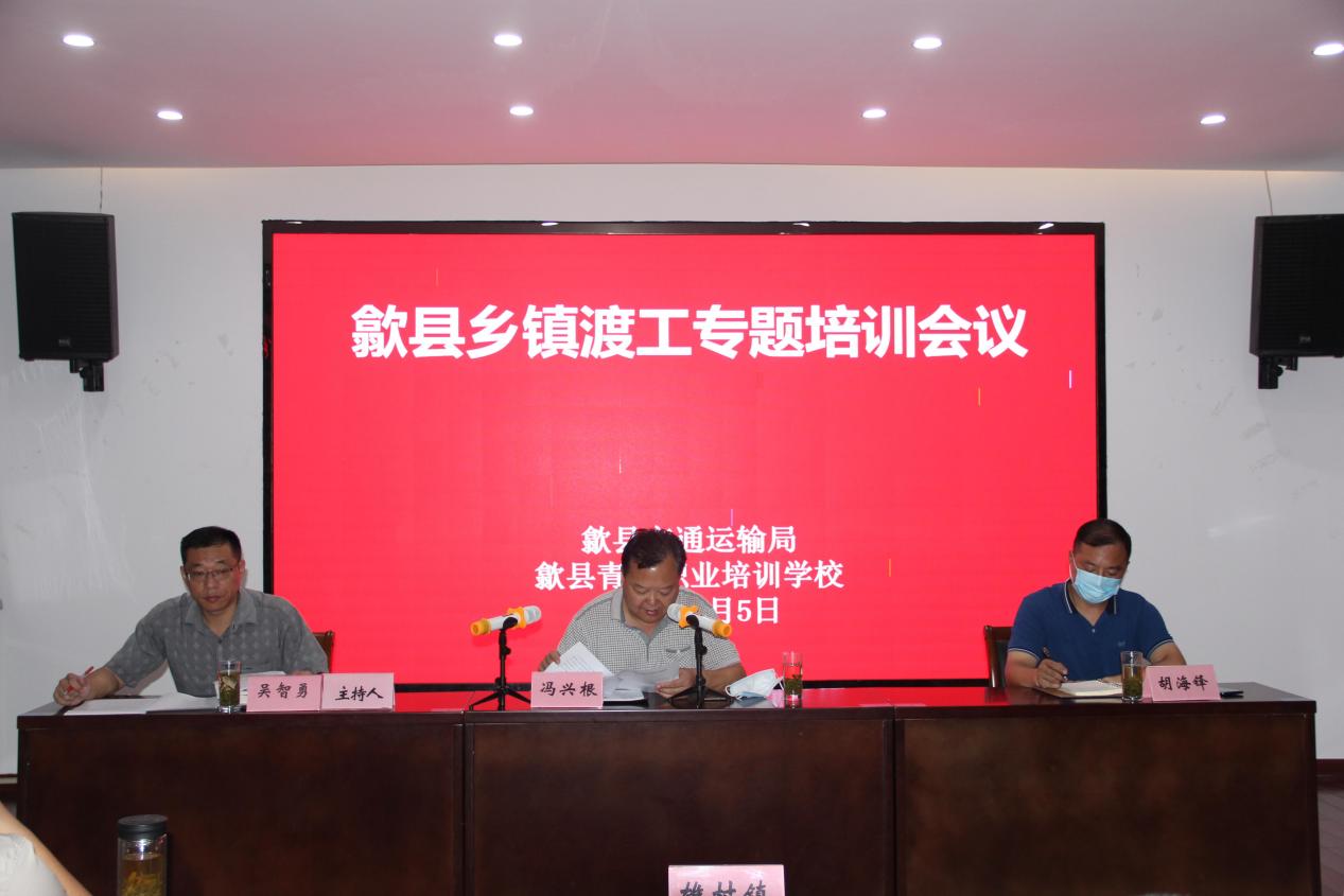 2021年8月5日,由歙縣交通運(yùn)輸局主辦,歙縣青創(chuàng)職業(yè)培訓(xùn)學(xué)校承辦的“歙縣鄉(xiāng)鎮(zhèn)渡工專題培訓(xùn)會(huì)議”在我中心順利舉辦??h內(nèi)小川、坑口、新溪口、王村、徽城、雄村、武陽、深渡等8個(gè)鄉(xiāng)鎮(zhèn)政府分管領(lǐng)導(dǎo)及在鄉(xiāng)的17名渡工培訓(xùn)對象參加培訓(xùn)。歙縣交通運(yùn)輸局副局長馮興根到會(huì)并作重要講話,青創(chuàng)學(xué)校負(fù)責(zé)人胡海鋒參加會(huì)議。