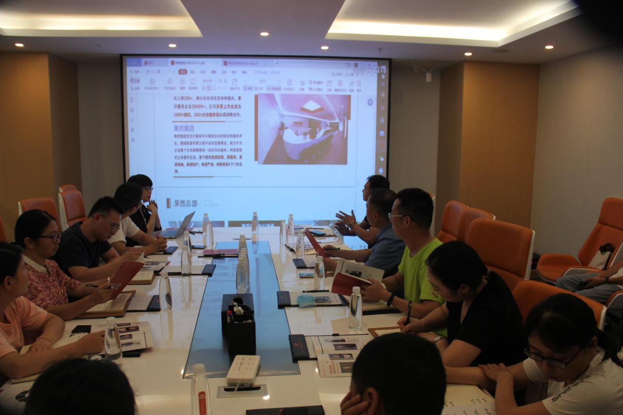 果然集團(tuán)人資總監(jiān)吳征利用PPT的形式,向體悟團(tuán)隊(duì)展示了果然集團(tuán)成長(zhǎng)、發(fā)展、裂變的過(guò)程,其團(tuán)隊(duì)使命、人才觀、價(jià)值觀、拓展服務(wù)領(lǐng)域和業(yè)態(tài)、如何增強(qiáng)與客戶的粘性等讓體悟小組成員耳目一新。果然財(cái)稅商務(wù)總監(jiān)肖衛(wèi)波從獲客渠道、團(tuán)隊(duì)打造、增強(qiáng)核心競(jìng)爭(zhēng)力等方面進(jìn)行的闡述,更體現(xiàn)了當(dāng)前經(jīng)濟(jì)模式下市場(chǎng)競(jìng)爭(zhēng)的激烈形勢(shì)和果然集團(tuán)應(yīng)對(duì)考驗(yàn)與挑戰(zhàn)的雄心壯志。歙縣招商投資服務(wù)中心主任胡海鋒介紹了金信財(cái)稅的發(fā)展沿革和服務(wù)模式,并從客戶服務(wù)、團(tuán)隊(duì)培養(yǎng)等角度展開(kāi)交流,受到果然集團(tuán)高管的認(rèn)同和肯定。