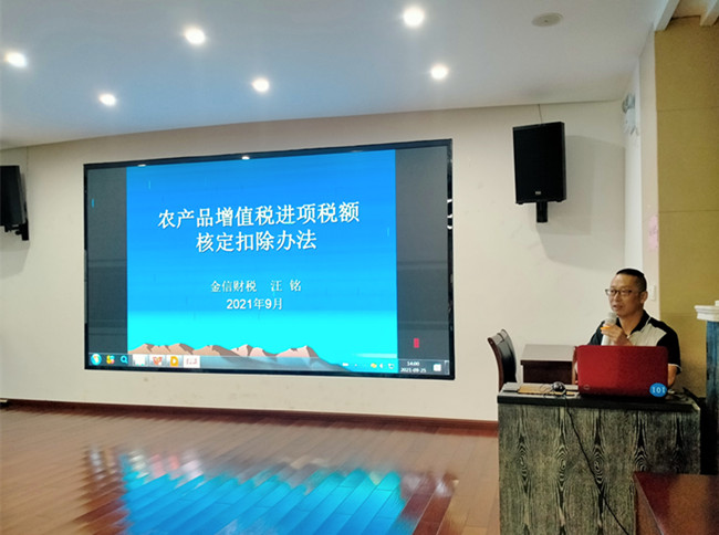 為進(jìn)一步加強(qiáng)涉農(nóng)產(chǎn)品相關(guān)稅收政策的掌握與理解,提升涉農(nóng)企業(yè)財(cái)稅籌劃和核算管理水平,9月25日下午,中心舉辦“農(nóng)產(chǎn)品增值稅進(jìn)項(xiàng)稅額核定扣除辦法”專(zhuān)題培訓(xùn),園區(qū)涉農(nóng)企業(yè)、中心財(cái)稅服務(wù)人員40余人參加。