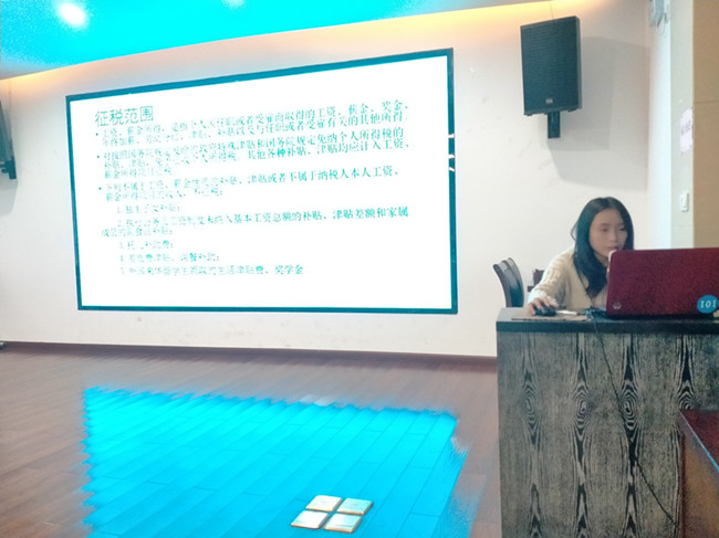 2021年10月23日,由歙縣招商中心主辦、金信財稅公司承辦,財稅代理部會計鄭靈芝主講的“工資薪金所得”專題PPT分享在一樓眾創(chuàng)空間舉行,中心財稅服務(wù)人員50余人參與此次分享。