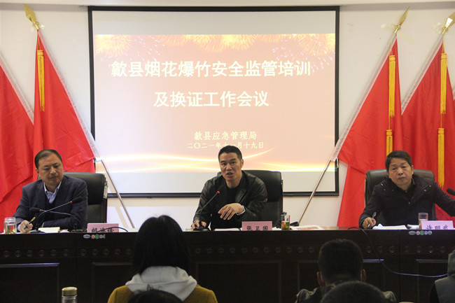 為牢固樹(shù)立安全發(fā)展的理念,學(xué)習(xí)宣傳貫徹習(xí)近平總書(shū)記關(guān)于安全生產(chǎn)的重要論述,進(jìn)一步強(qiáng)化政府部門對(duì)煙花爆竹經(jīng)營(yíng)(零售)單位的安全監(jiān)管,2021年11月19日,由歙縣應(yīng)急管理局主辦的2022年度煙花爆竹安全監(jiān)管培訓(xùn)及換證工作會(huì)議在我中心五樓報(bào)告廳舉行。全縣28個(gè)鄉(xiāng)鎮(zhèn)分管安全工作的領(lǐng)導(dǎo)及工作人員到會(huì),縣應(yīng)急管理局張衛(wèi)國(guó)局長(zhǎng)參加會(huì)議并做重要講話,許明武副局長(zhǎng)主持會(huì)議并就換證申請(qǐng)、審查、日常監(jiān)管提出具體意見(jiàn)。歙縣招商投資服務(wù)中心主任、安徽正億安全技術(shù)服務(wù)有限公司總經(jīng)理胡海鋒向參會(huì)人員介紹了中心服務(wù)范圍和主要職能。