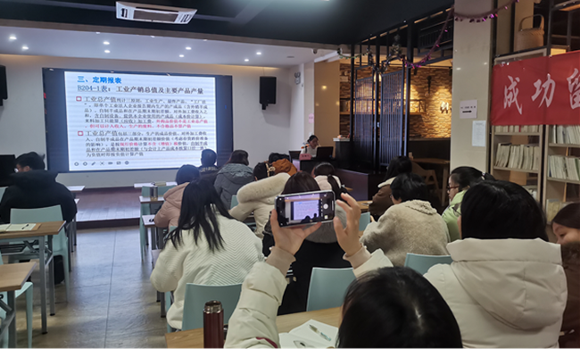 為進(jìn)一步做好2021規(guī)上企業(yè)統(tǒng)計(jì)年報(bào)工作,2月22日,我中心邀請(qǐng)縣統(tǒng)計(jì)局專業(yè)干部就此項(xiàng)工作進(jìn)行專題培訓(xùn),涉及規(guī)上企業(yè)會(huì)計(jì)40余人參加培訓(xùn)會(huì)??h統(tǒng)計(jì)局副局長(zhǎng)吳文輝、縣科技商務(wù)經(jīng)濟(jì)信息化局副局長(zhǎng)胡志堅(jiān)受邀參會(huì)并作指導(dǎo)性講話。