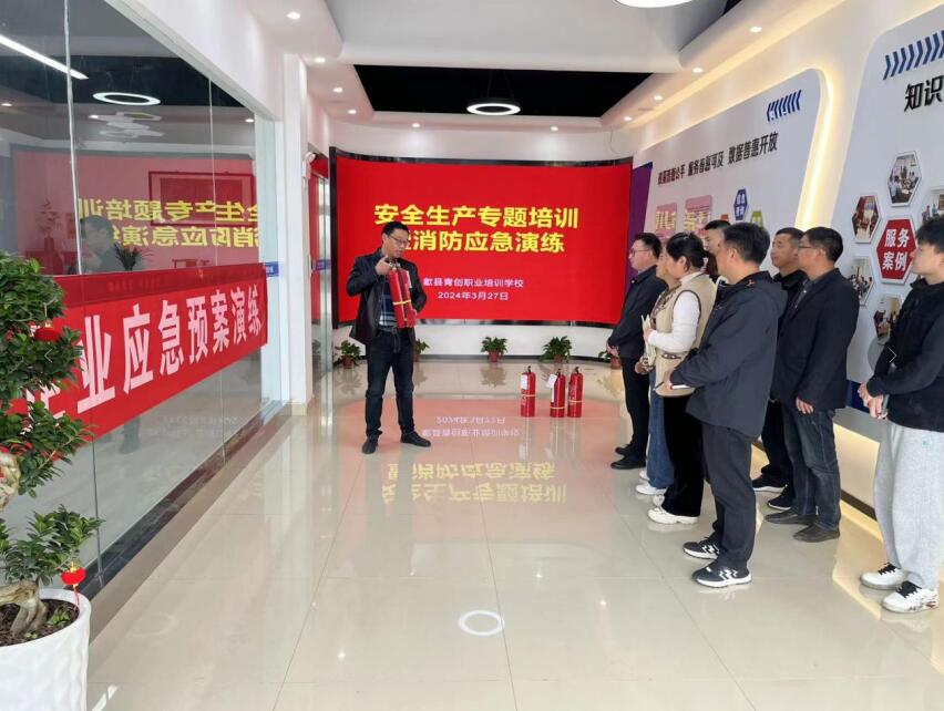 2024年3月27日,歙縣青創(chuàng)職業(yè)培訓(xùn)學(xué)校在校內(nèi)組織了一場關(guān)于安全消防知識的專題培訓(xùn),全體學(xué)校職工均參與了此次活動。